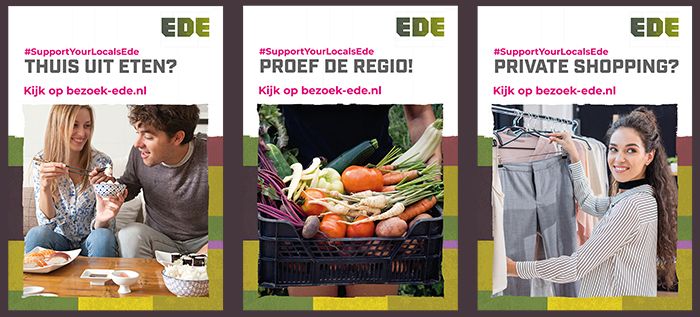 Na de aangekondigde coronamaatregelen van 13 oktober jl. zet Ede Marketing - het eerder dit jaar geïntroduceerde - #SupportYourLocalsEde opnieuw in. Via de website bezoek-ede.nl/support-your-locals zijn allerlei creatieve, mooie en lekkere initiatieven van lokale ondernemers in heel gemeente Ede te vinden. Het gaat hierbij op dit moment vooral om initiatieven van horecabedrijven zoals het afhalen van gerechten en thuisbezorgservices.